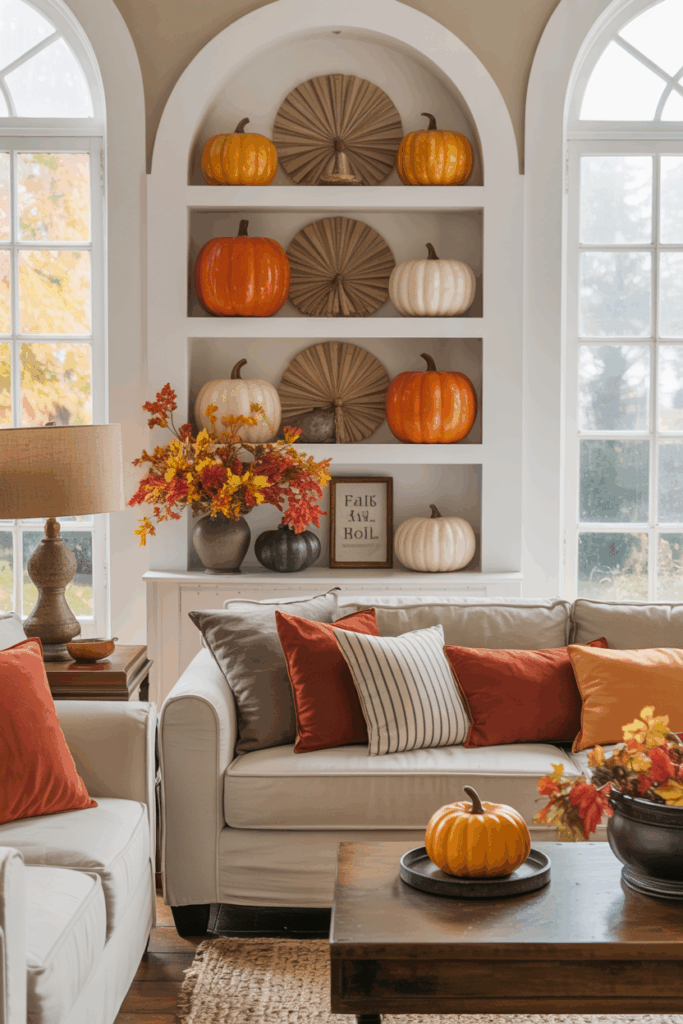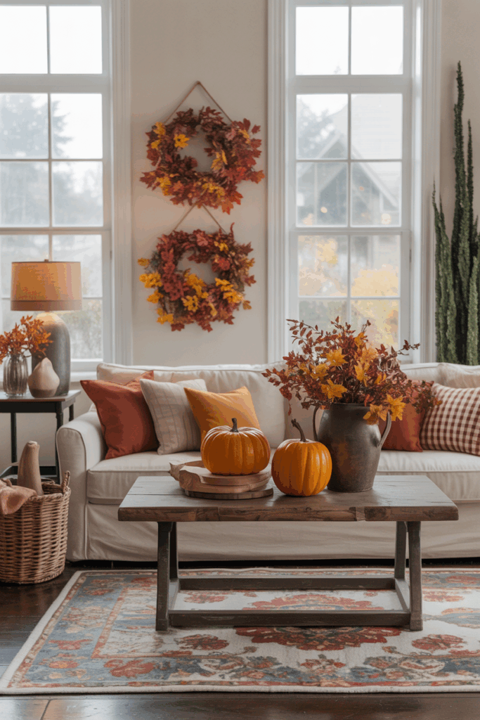 To tie the palette together, use throw pillows or art pieces that blend all three colors. This creates a harmonious look that feels balanced and autumn-ready while still working for year-round décor.