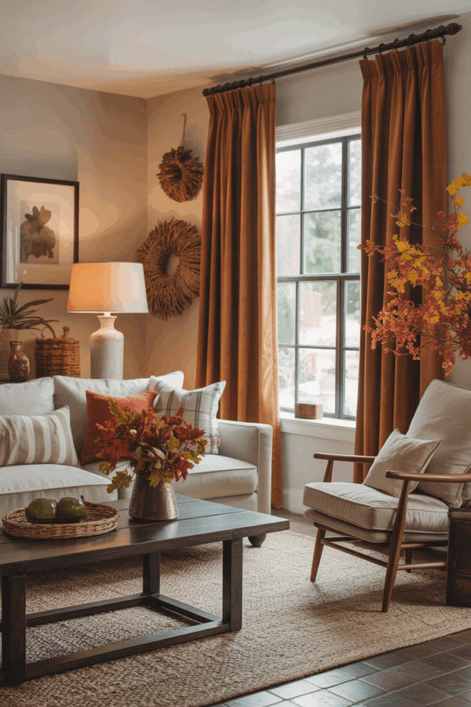 Heavier curtains help keep cold air out and make rooms feel cozier. Choosing colors like deep reds, browns, or warm neutrals matches fall decor well. Thicker fabrics also add texture and a comforting look to the space.