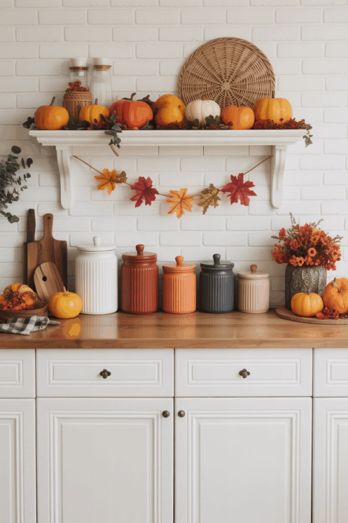 If you want to blend your décor with functionality, choose clear glass canisters and fill them with seasonal ingredients that double as decoration—like cinnamon sticks, mini marshmallows, apple cider tea bags, or autumn-hued pasta. The combination of visual appeal and practicality will keep your counters looking styled and purposeful all season long.