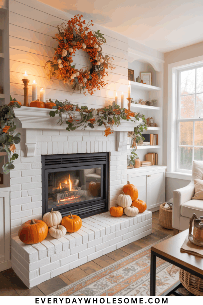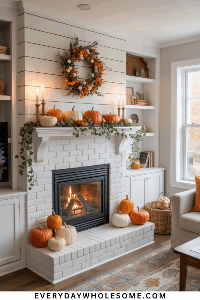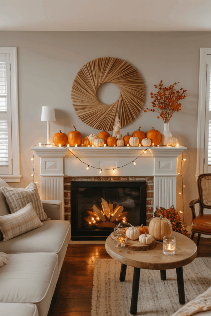 Mini pumpkins are effective for creating a simple, charming fall mantel display. They add texture without overwhelming the space.