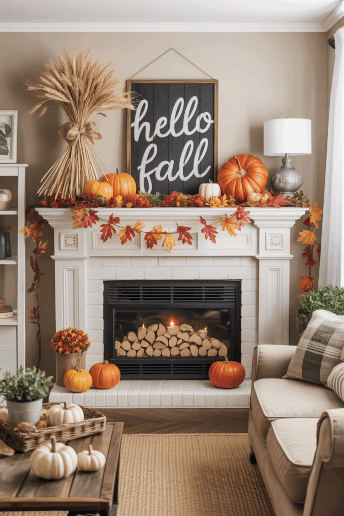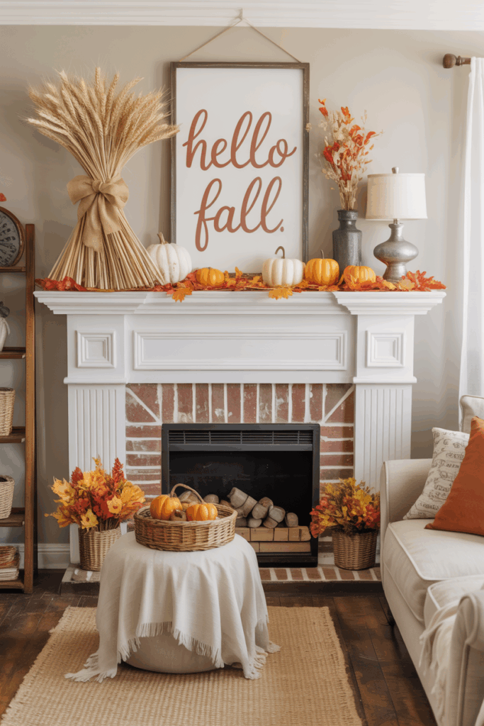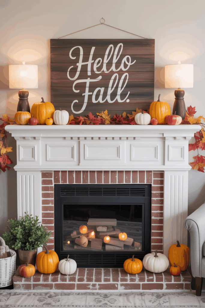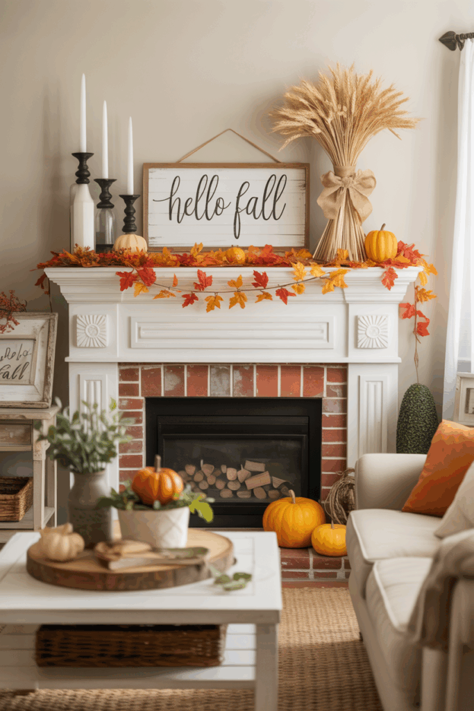 Rustic wooden signs add a simple, authentic touch to fall mantels. They often feature farmhouse-style wood with messages that reflect the season’s mood.