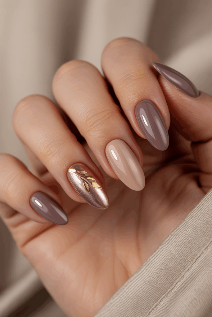 Pair dusty lavender with gray or taupe for a minimalist style, or layer with metallic accents for extra interest. It’s a subtle option for those who prefer lighter nails in autumn.