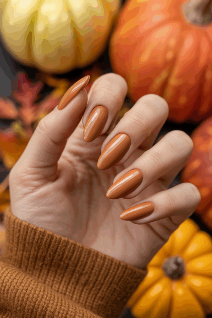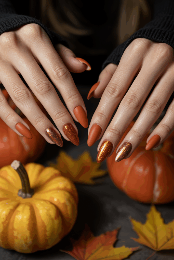 Pair glazed pumpkin nails with cozy sweaters or earthy-toned outfits for a playful seasonal touch. Adding gold or bronze accents can make the look even more polished.