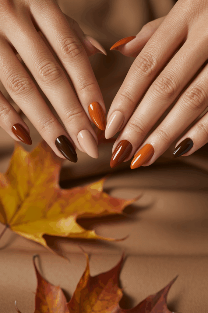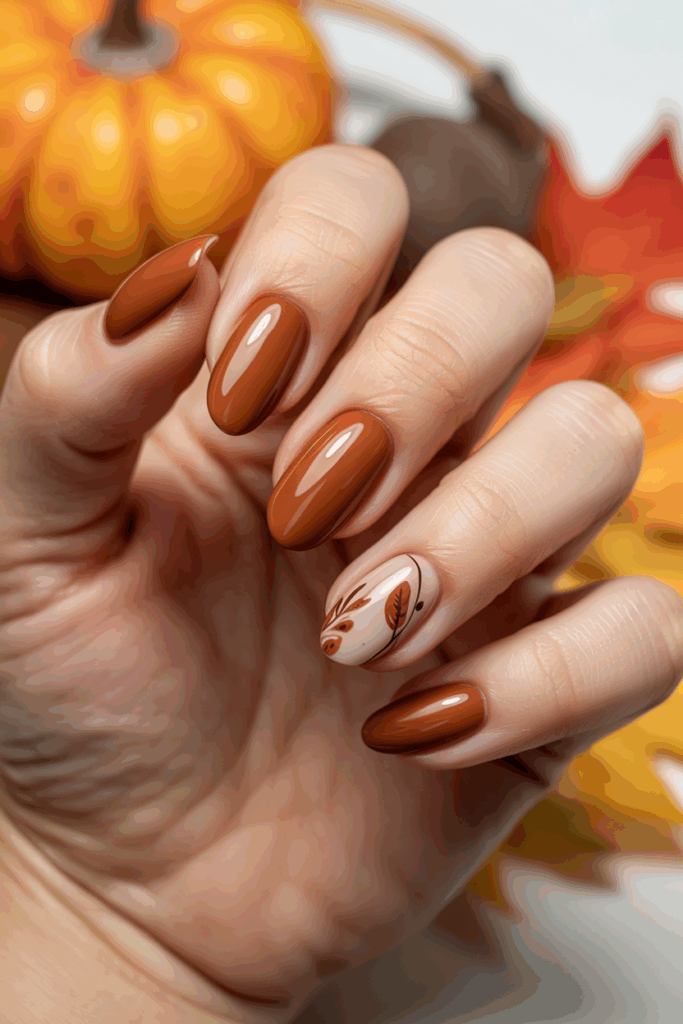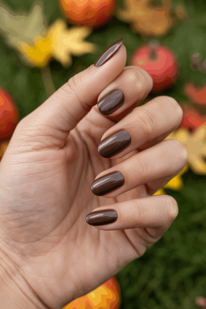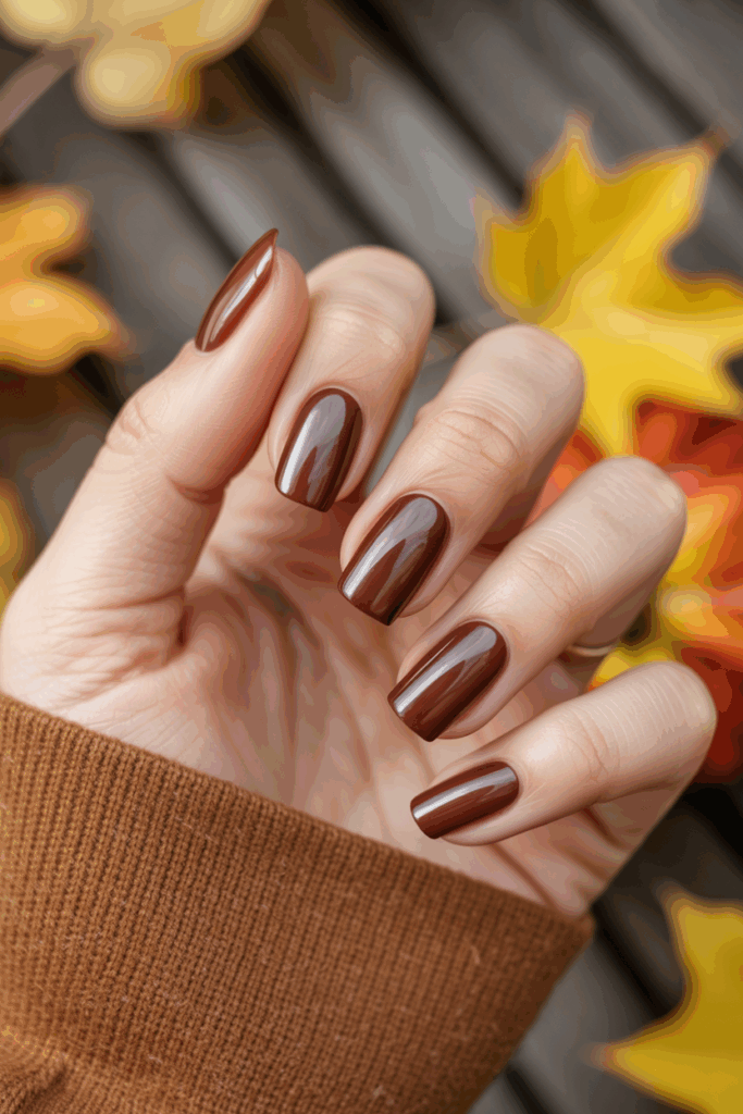Warm chocolate brown is a rich, deep color that fits well with fall. It brings a cozy and natural feel to the nails. This shade works on all nail shapes and can be worn simple or with subtle accents. It pairs easily with autumn outfits.
