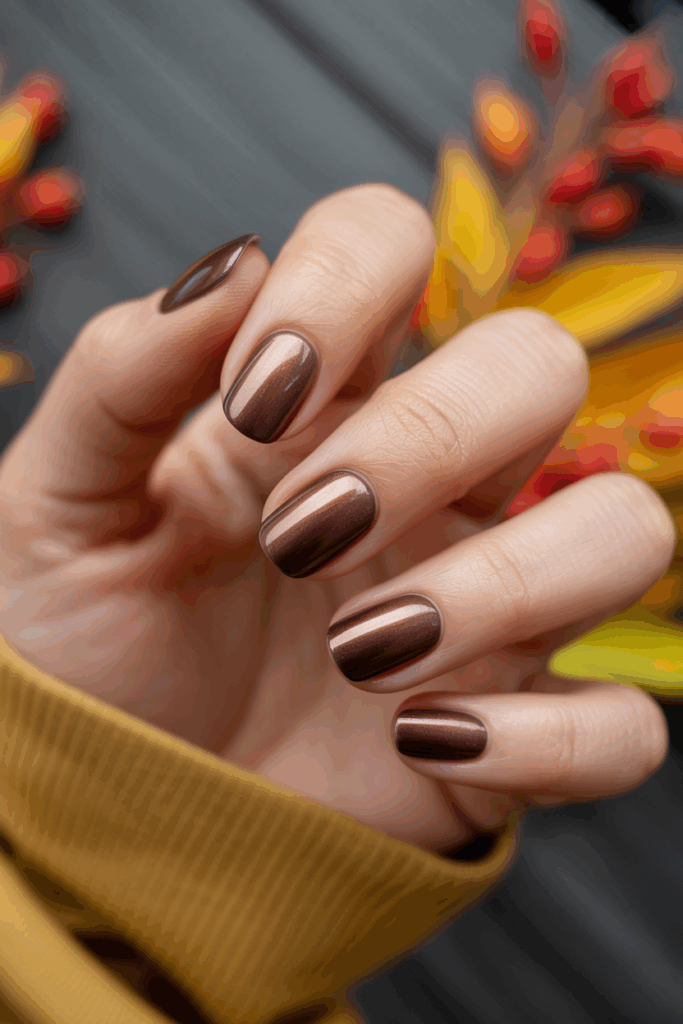 Brown nails are often overlooked, but they can be incredibly stylish when chosen in the right shade. Warm chocolate offers depth and richness, making it a standout neutral for the season.