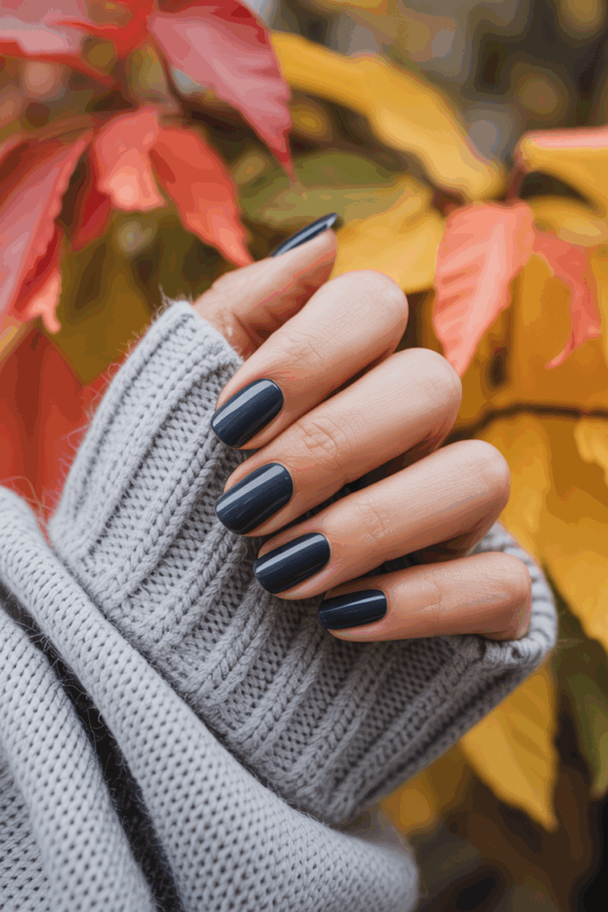 Navy blue is a chic alternative to black nails, providing depth without feeling too heavy. The velvet finish adds a soft, luxurious feel, making it stand out among darker autumn shades.