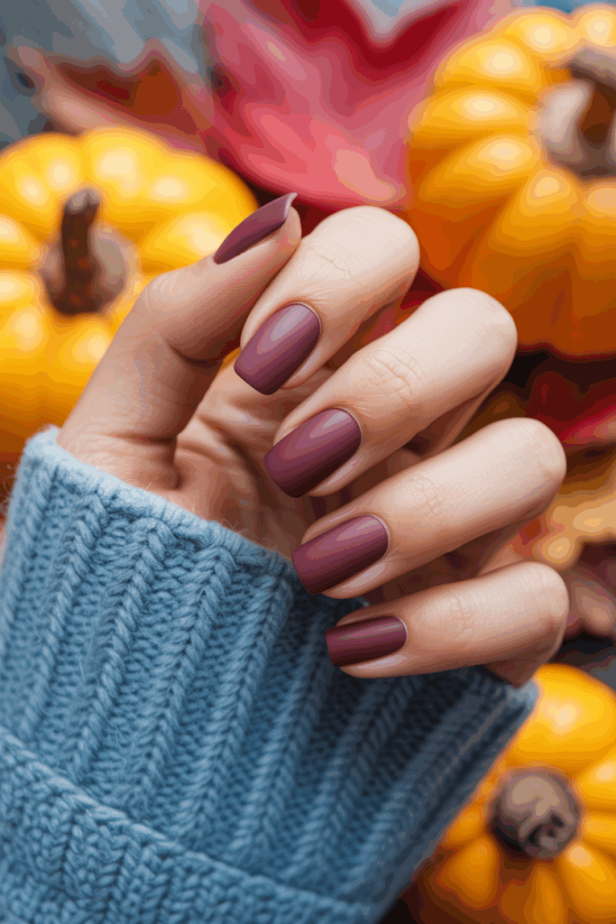 Matte mulberry is a rich, deep color that fits well with fall’s cozy vibe. It offers a sophisticated look without being too bright or flashy. This shade works on many nail shapes, making it versatile and easy to wear.