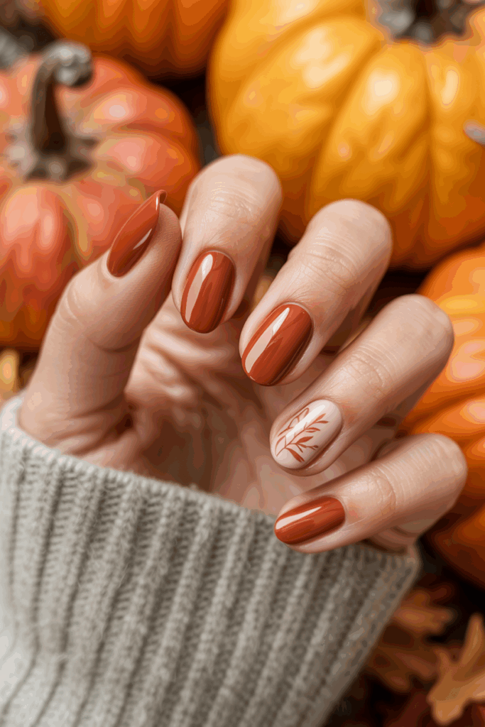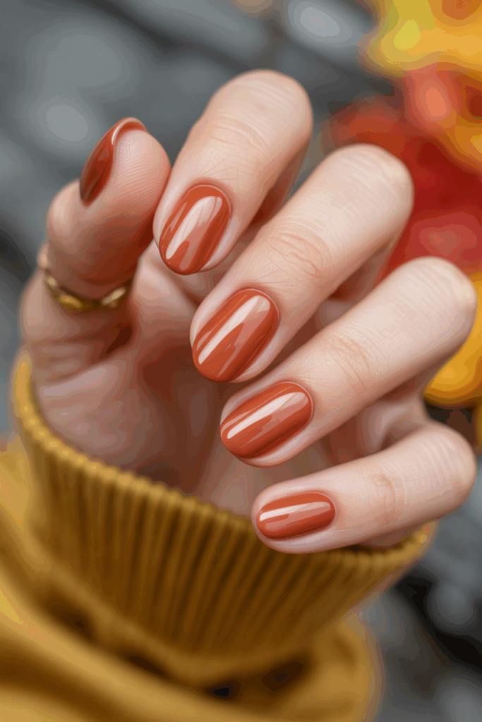 Rust is one of the most versatile fall nail shades, bridging the gap between neutrals and statement colors. It carries the warmth of orange with the depth of brown, creating a perfect balance for autumn.