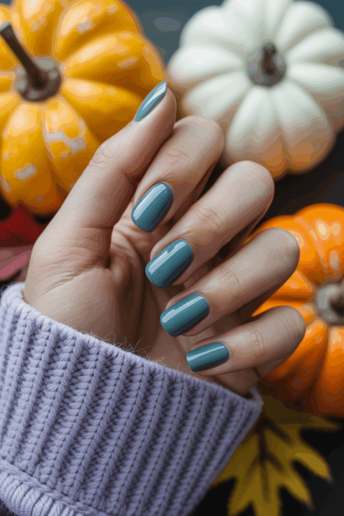 This color is a fresh alternative to traditional fall shades, offering a cool, calming touch. It’s perfect for those who want something different but still seasonal.