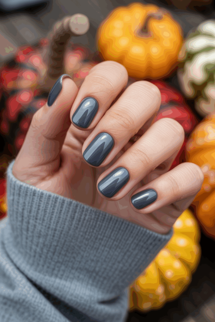 Slate gray offers a modern and moody vibe for autumn nails. The cool undertone makes it a stylish neutral that works with any outfit.