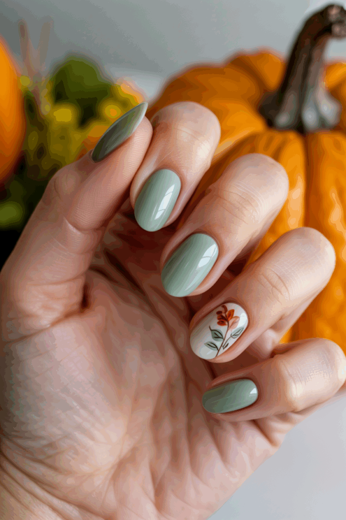 Muted teal is a popular fall nail color. It combines the calmness of green with a blue undertone. This shade fits well with the muted, earthy tones common in fall. It adds color without being too bright or bold.
