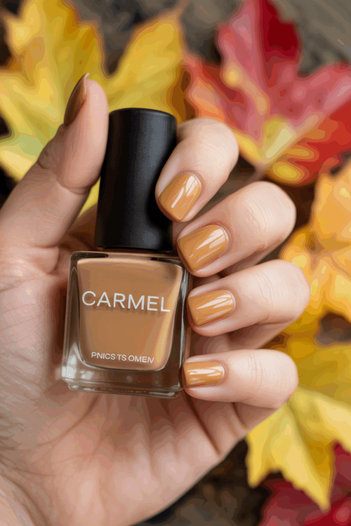 Caramel polish shades are popular this fall. They offer a warm, natural look that fits autumn well.
