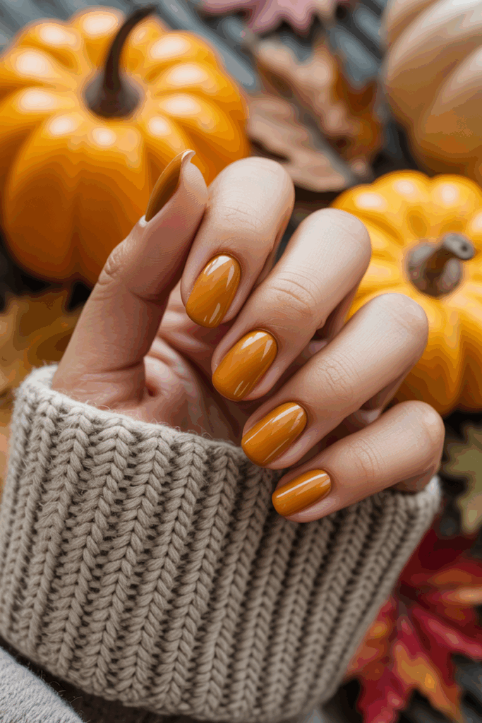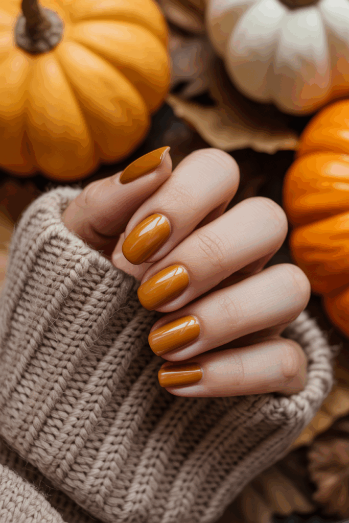 Warm ochre shades bring a cozy and earthy feel to fall nails. These tones work well on short and almond shapes. They add subtle warmth without being too bright, making them a versatile choice for autumn 2025.