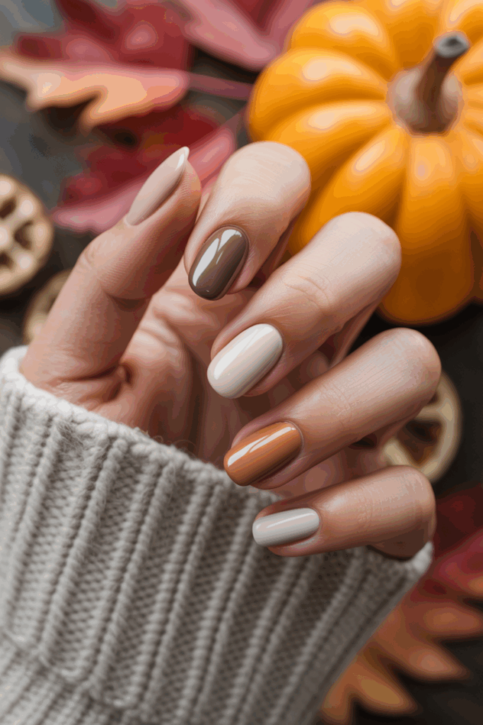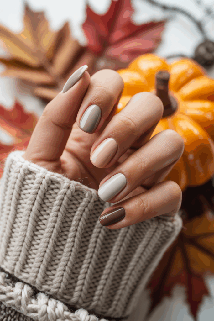 Cozy neutral tones are a key trend for fall 2025 nails. Shades like soft taupes, warm beiges, and creamy hues create a calm, elegant look.