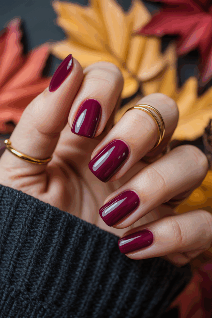 Dirty plum is a popular fall color for nails in 2025. It combines dark purple with grayish tones for a muted, rich look. This shade works well for both casual and formal styles, fitting the season’s mood.