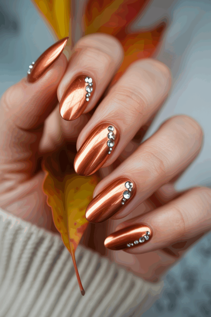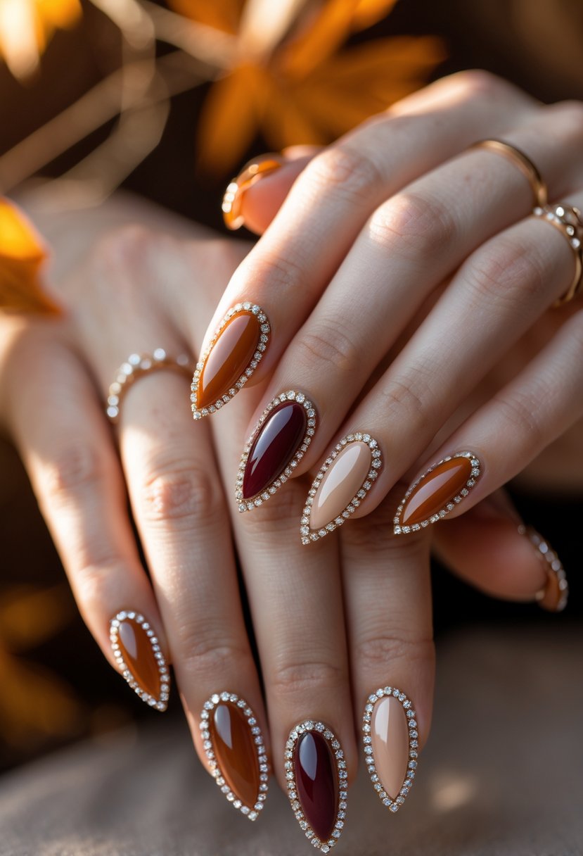 17 Fall Nails With Rhinestones That Elevate Your Autumn Look