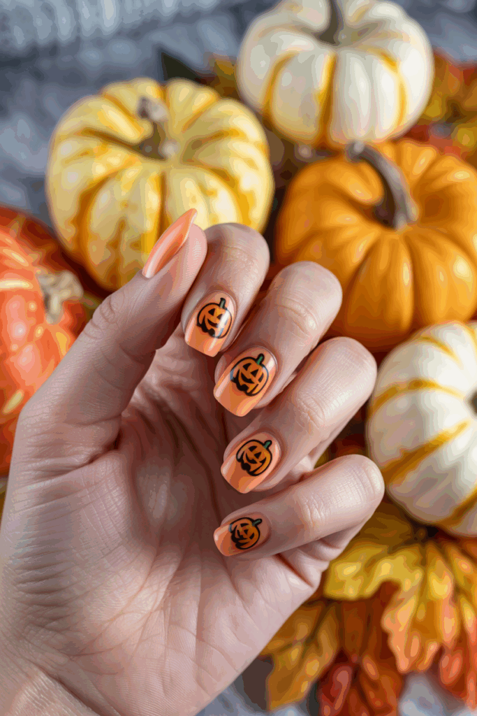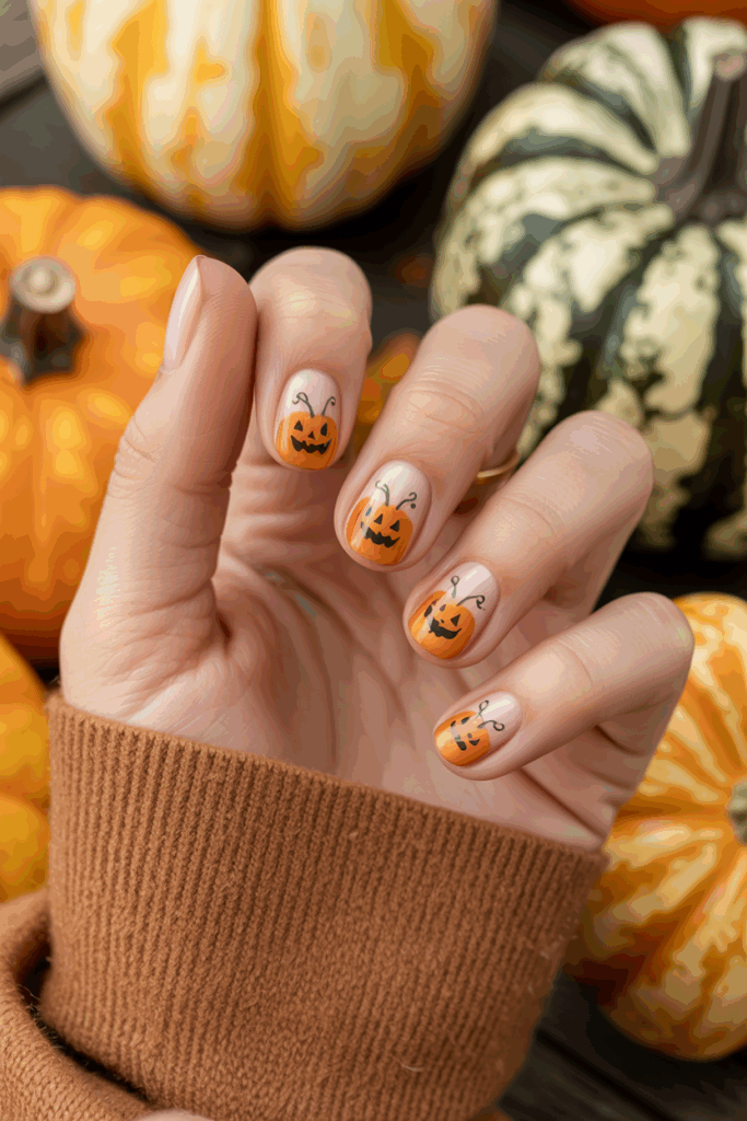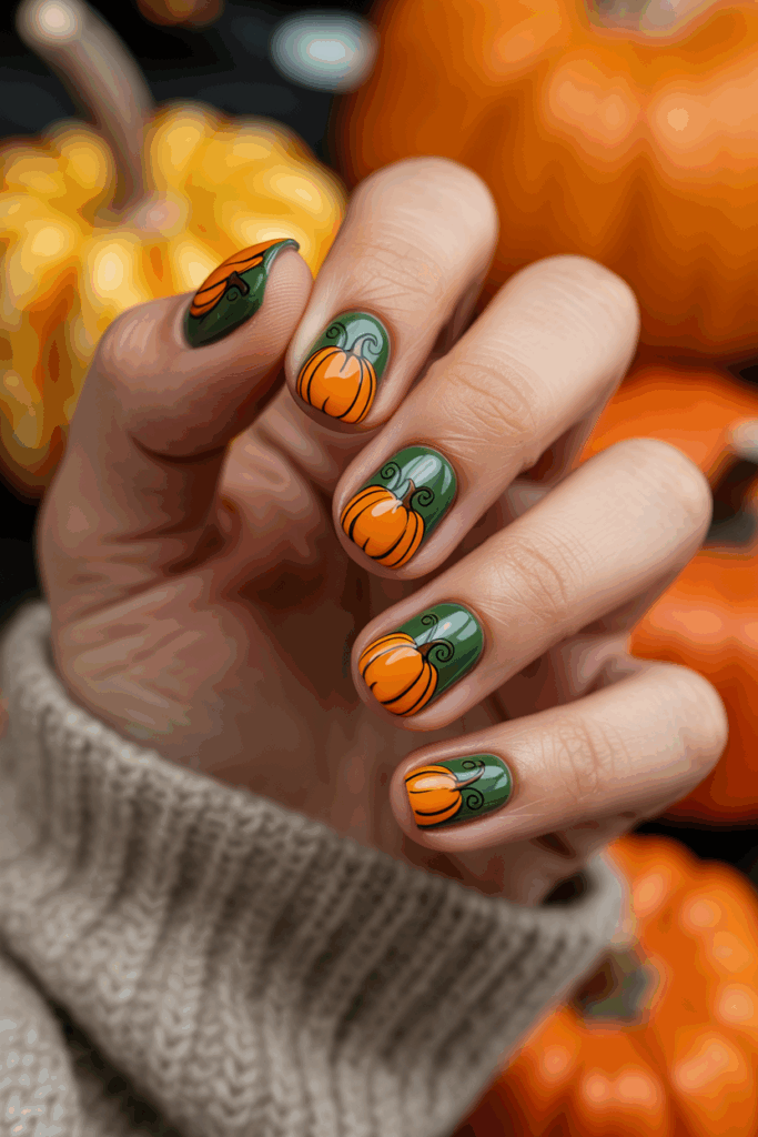 16. Pumpkin patch nail art celebrates the heart of fall fun.
