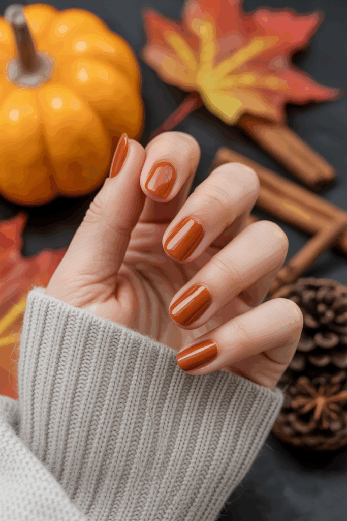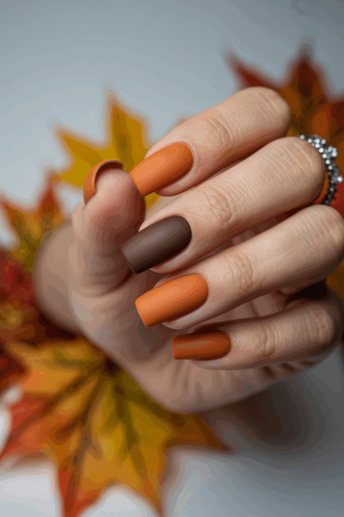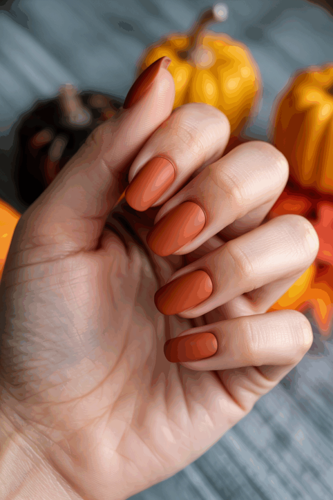 1. Burnt orange matte nails add warmth and richness to your autumn look.