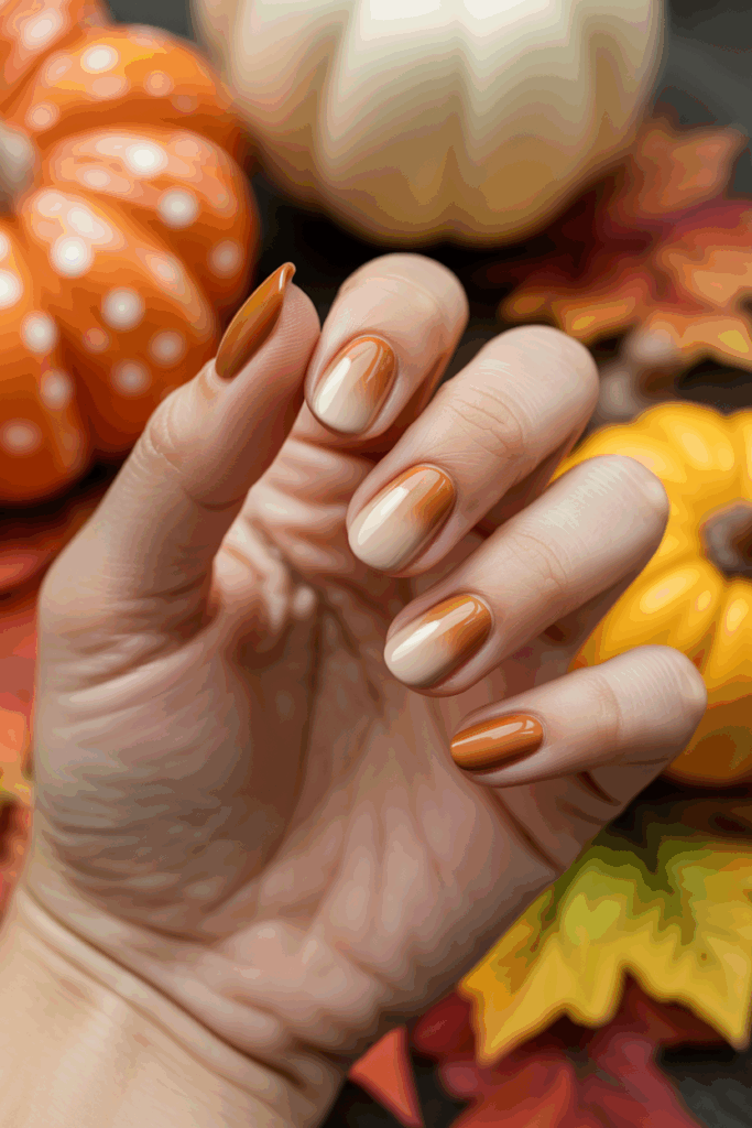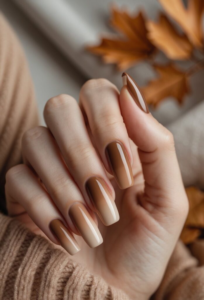 3. Brown and beige ombre nails blend cozy tones for a seamless fall transition.