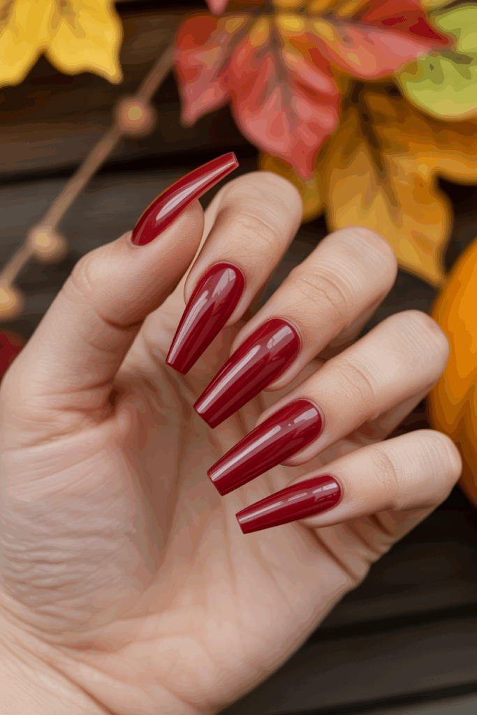 Deep burgundy is a classic fall color with versatile appeal. Its dark red tone carries warmth without being too bright, making it ideal for both casual and formal occasions.