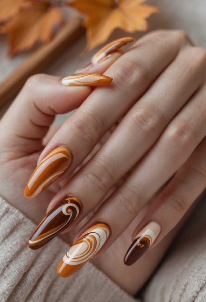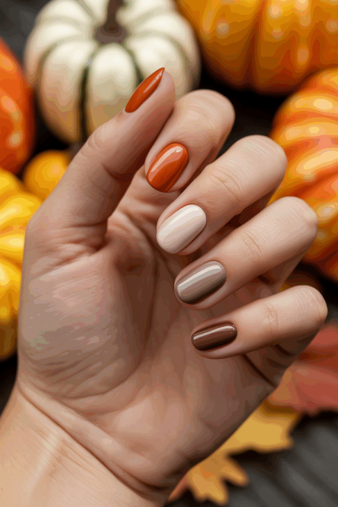 14. Pumpkin spice tones are the ultimate fall nail color palette.