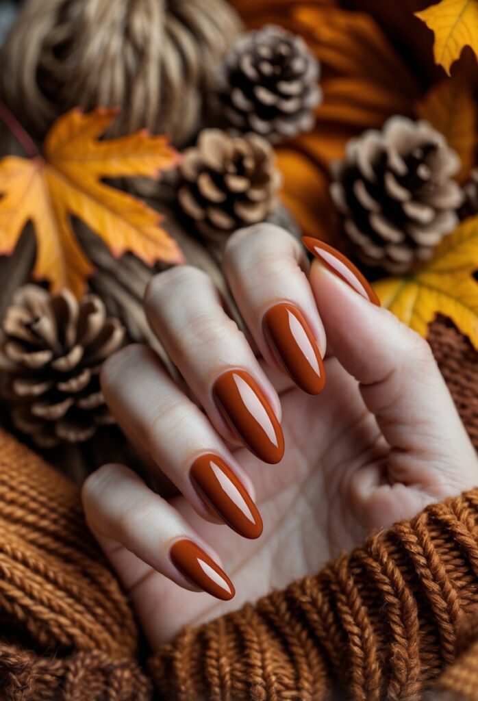 32. Burnt sienna nails are a cozy neutral that complements all skin tones.