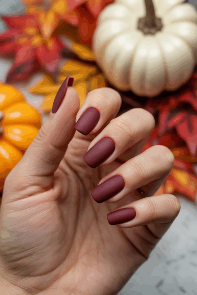 5. Matte burgundy nails are bold, romantic, and perfect for sweater weather.