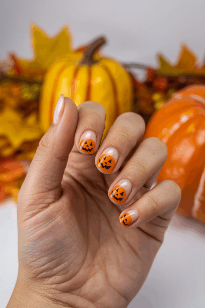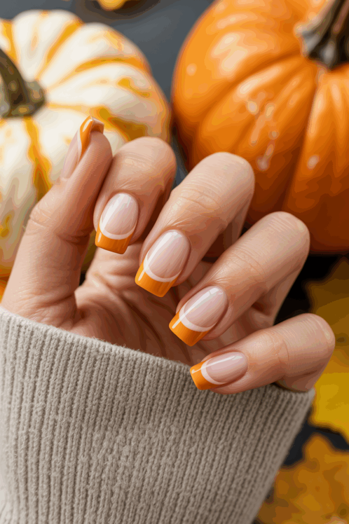 2. Pumpkin French tips offer a festive touch without going overboard.