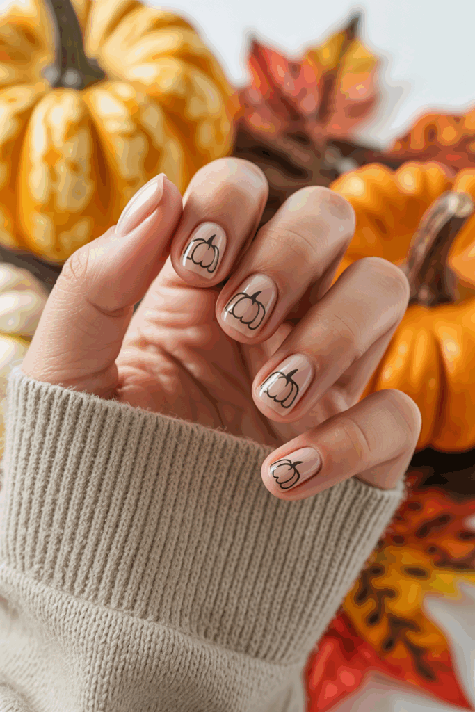 13. Pumpkin outlines on nude nails keep things subtle but festive.