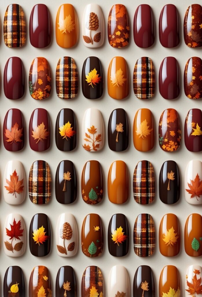 These designs often blend warm, earthy tones with creative shapes or detailed imagery to capture the essence of fall.