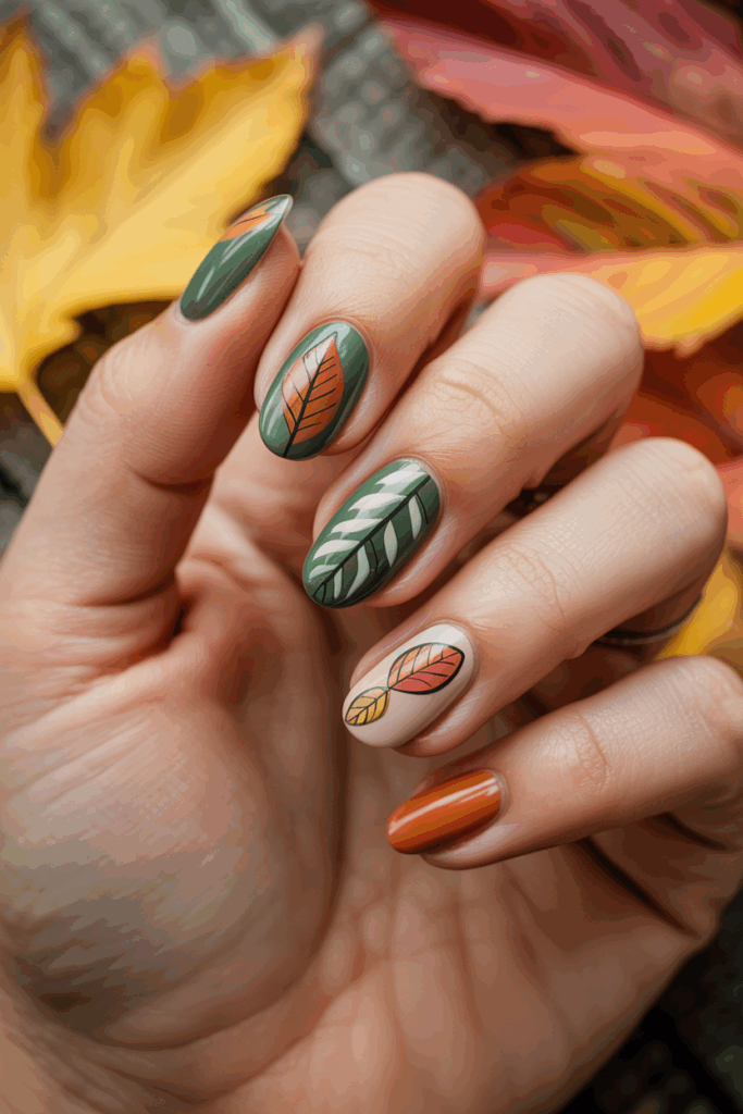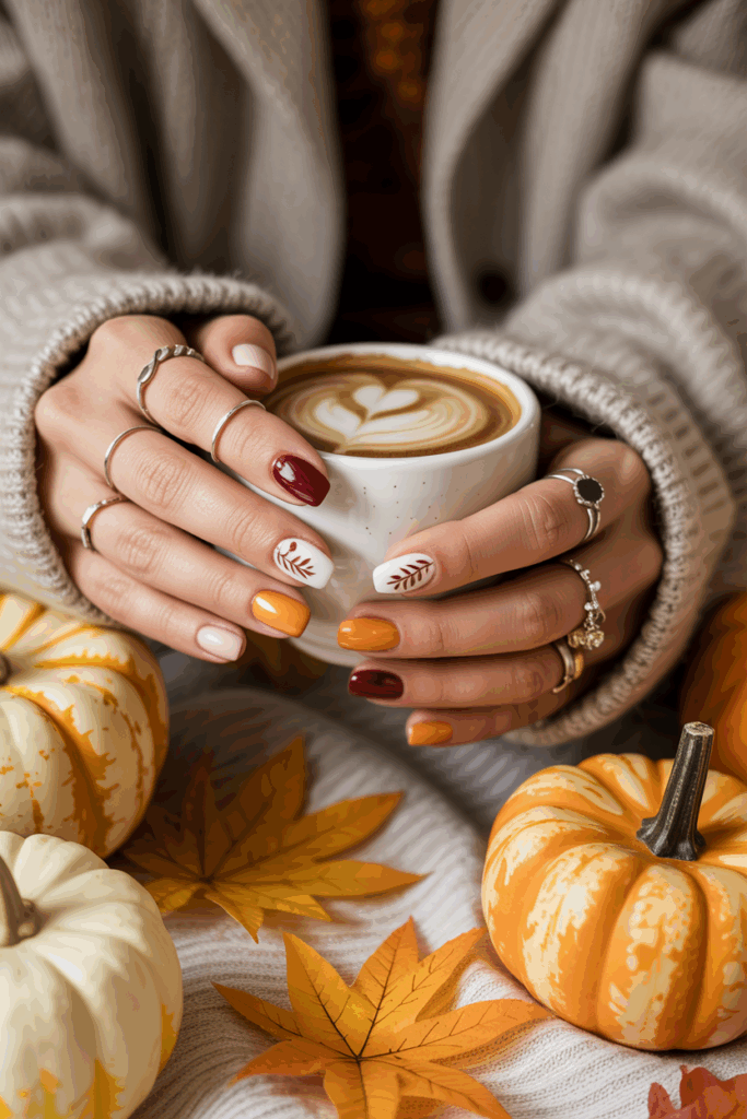 This style works well with both short and long nails. It adds a bold yet elegant touch to any fall outfit.