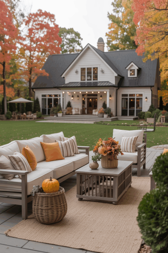 Transform your patio into a cozy autumn retreat with the right seating and textiles. Use outdoor-safe furniture, cushions, and throws to create warmth and invite guests to linger.