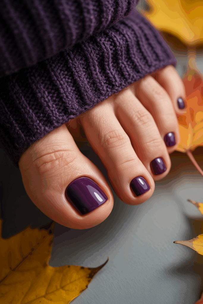 Eggplant purple is a deep, rich shade of purple that works well for fall. It adds a touch of elegance without being too bright. This color suits most skin tones, making it a versatile choice for autumn pedicures.