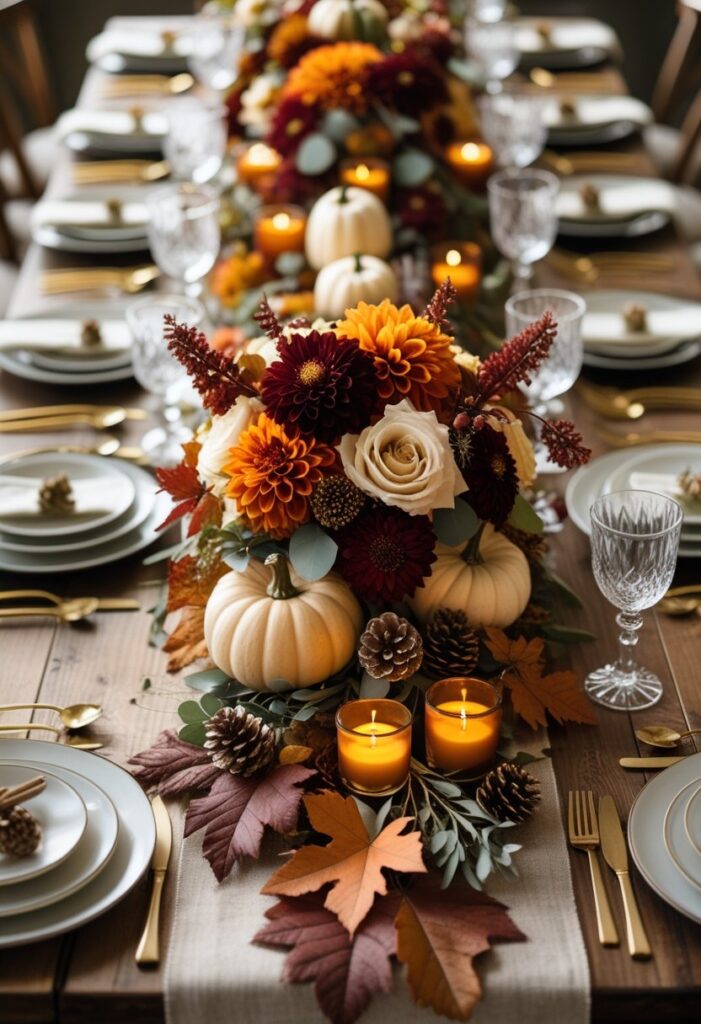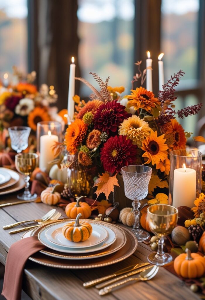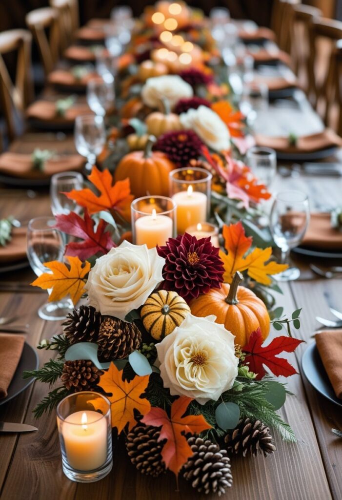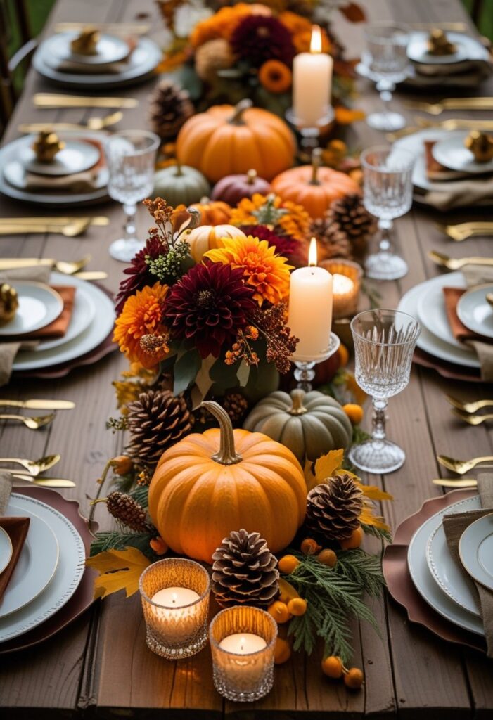 Save your favorites and build a cohesive autumn look with layers of texture, candlelight, and natural materials. Mix heights, repeat colors, and add seasonal greenery for a polished table you can adapt for everyday fall, Thanksgiving, or weddings.