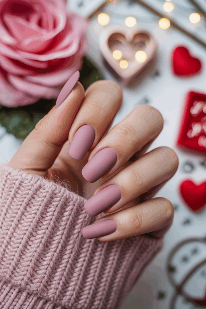Matte mauve nails give a soft and elegant look. They work well for February, matching winter and Valentine’s Day styles. This muted shade adds subtle charm without being too bright.