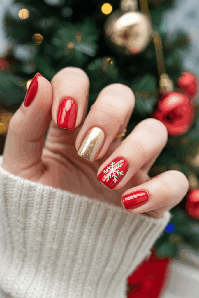 The red and gold nail color combination is a timeless choice for Christmas. It offers a rich, festive look without being too flashy.