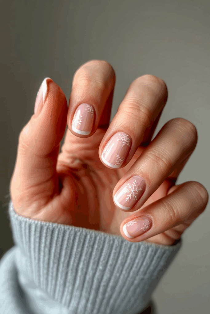These nails feature a soft snowflake design on one or two nails. The rest remain simple with neutral or pastel colors. This creates an elegant and understated holiday look. It works well for those who prefer festive but low-key nail art.