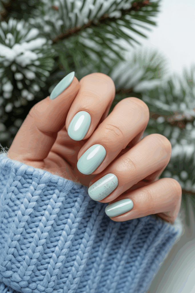 Minimalist light mint nails offer a fresh, simple look for winter. The soft green shade pairs well with neutral tones.