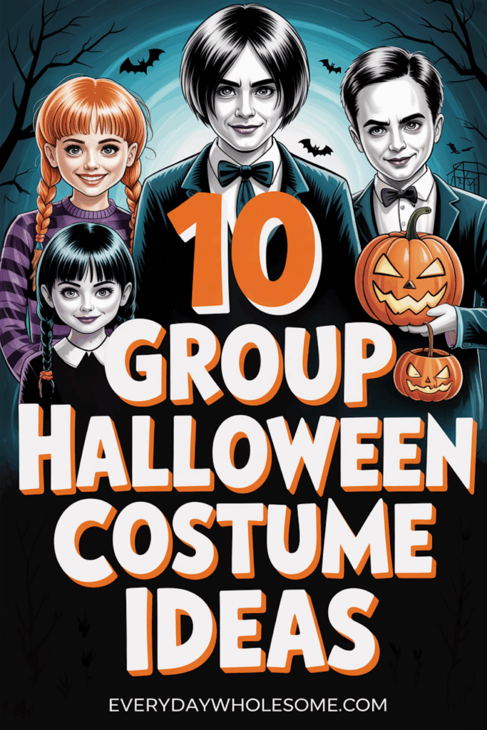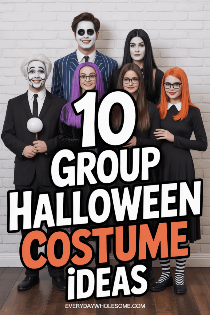 From Morticia’s elegant black dress to Wednesday’s dark, serious style, these costumes fit well for groups. They offer a mix of spooky and fun without being too scary.