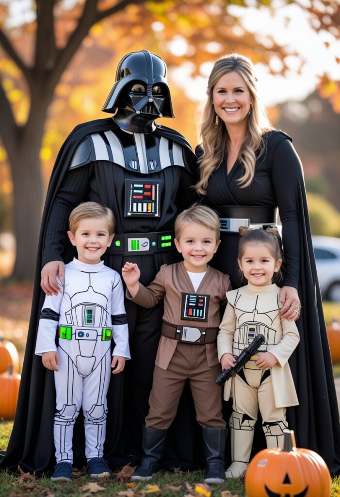 With lightsabers, masks, and robes, the costumes are both fun and dramatic. They also work well for groups with different ages and personalities since each character has a unique style.