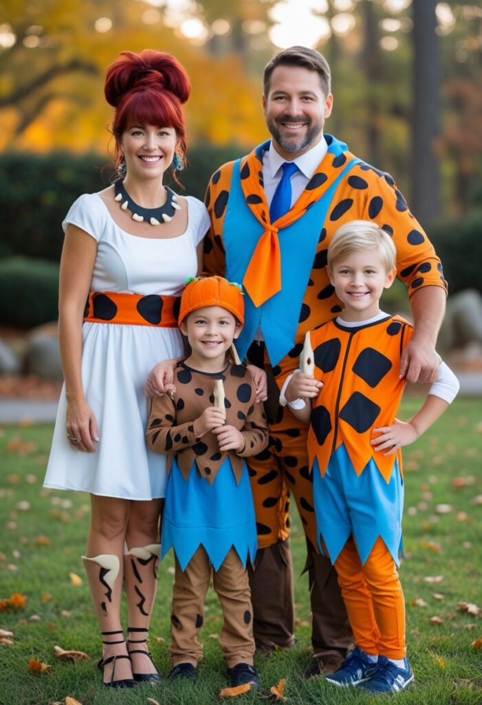 The Flintstones and the Rubbles are a fun throwback cartoon option. Parents can be Fred and Wilma or Barney and Betty, while kids dress as Pebbles and Bamm-Bamm.