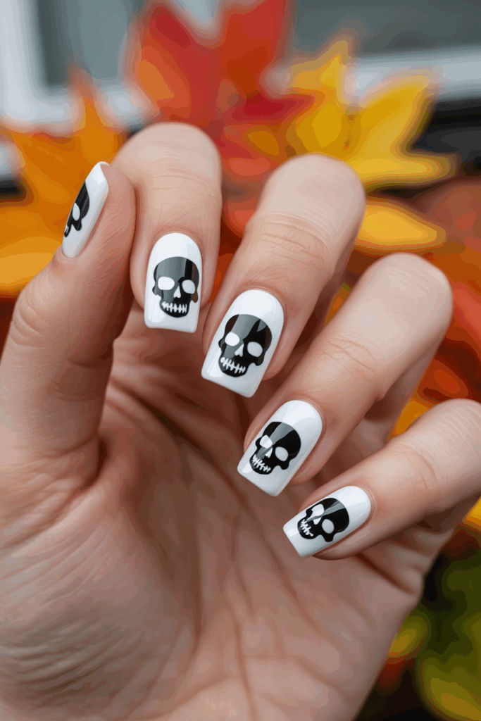 17 Black and White Halloween Nails Ideas for Stylish Seasonal Manicures