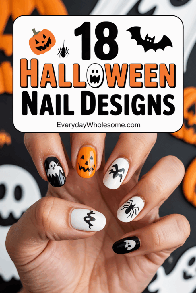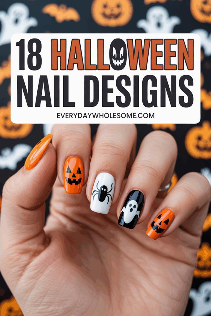 The article shows 18 different Halloween nail designs, giving readers plenty of ideas to choose from for their own spooky look. These designs blend classic Halloween themes with trendy nail art techniques to inspire both beginners and experienced nail artists.
