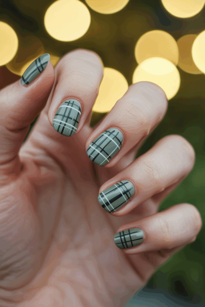 Plaid nail art adds a cozy, classic touch to holiday nails. It works well with traditional reds and greens or deeper, muted tones for a subtle look. This style can be simple or detailed, fitting both casual and festive occasions.