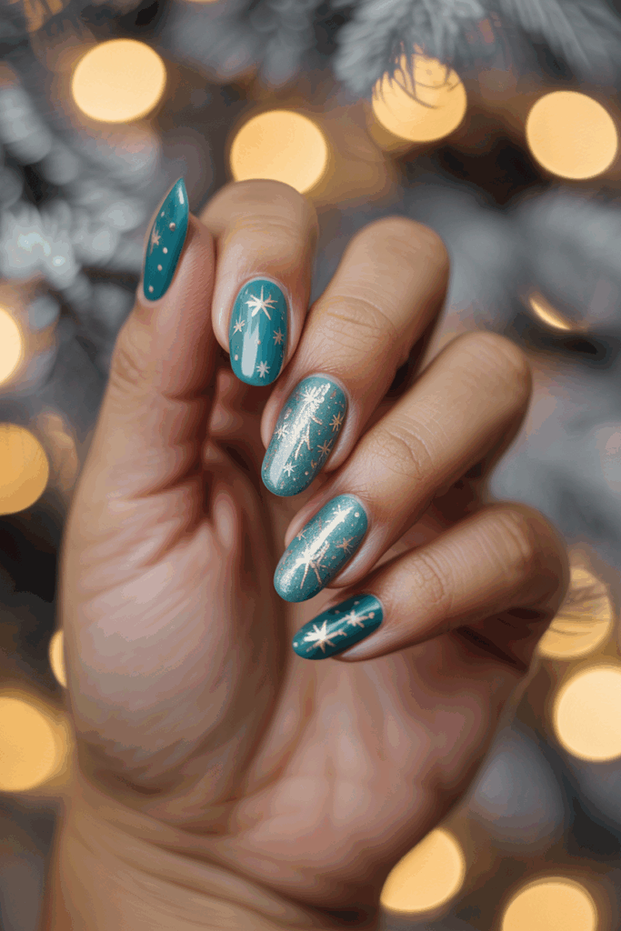 Almond-shaped nails offer a sleek and elegant base for holiday nail art. They work well with classic colors like red and green, as well as glitter and metallics.