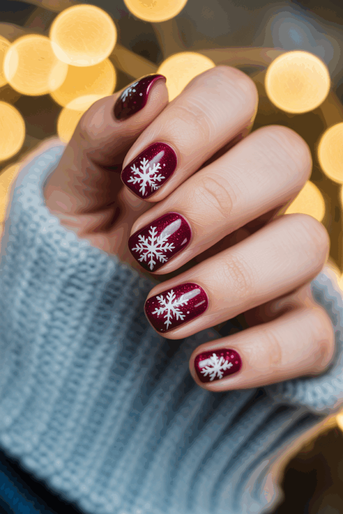 Snowflake patterns bring a clear winter feel to holiday nails. They can be simple or detailed, fitting any style from minimal to bold. People often use white or glitter over dark or bright colors to create a crisp, festive look. These designs work well for both casual and formal occasions.