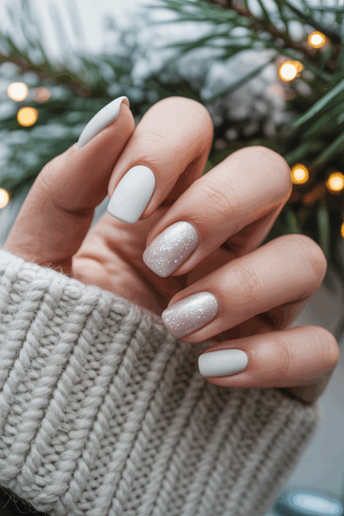 This style works well for those who want a minimalist yet festive manicure. It pairs nicely with winter outfits and accessories.