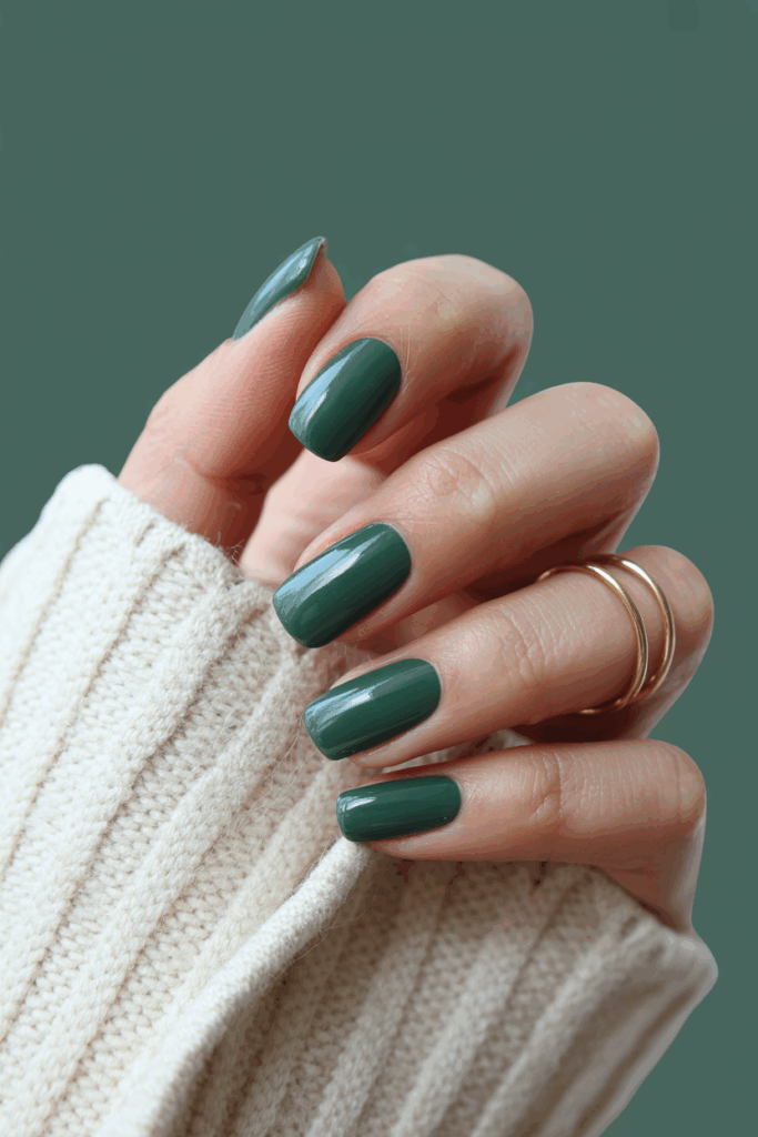 Winter forest green nails offer a rich, deep color ideal for the colder months. This shade balances elegance with a natural vibe.