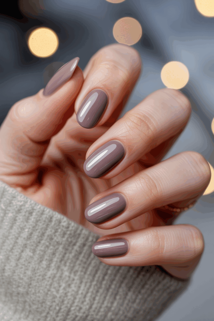 Taupe is always a crowd favorite for neutral-girl fall nails, but the minute you add a frosted shimmer on top, it transforms into something softly holiday-ready. This shimmer isn’t glittery — think more “candlelit glow” than “Christmas tree sparkle.” It’s delicate, luminous, and so flattering.