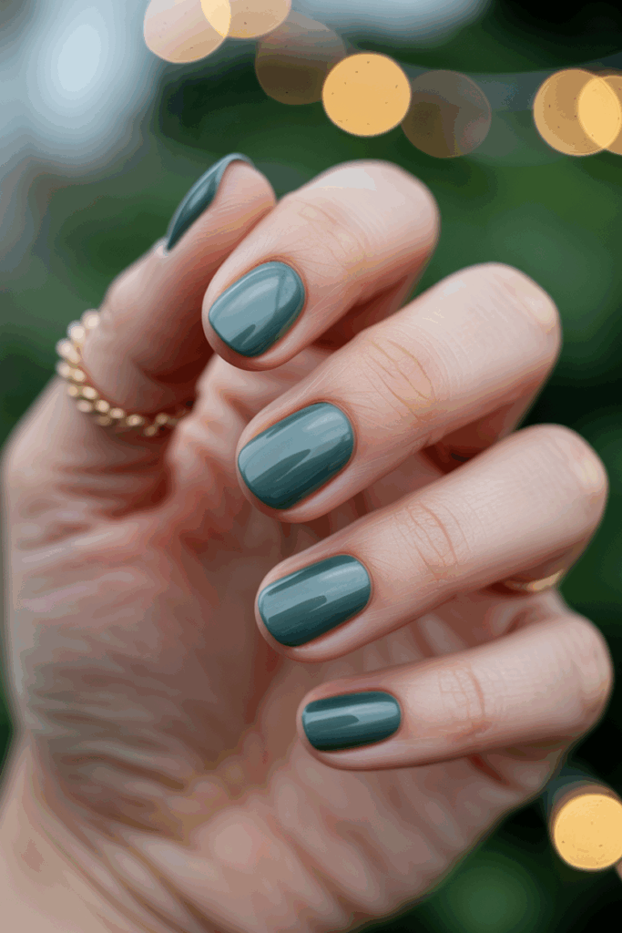 Minimalist evergreen nails look especially good on short or square nails. Add a tiny white line, dot, or barely-visible snowflake for a clean, modern twist. Even just one small detail can make the whole manicure feel intentional without turning into full-on Christmas nail art. It’s that “quiet luxury” winter moment that still works on Thanksgiving Day.